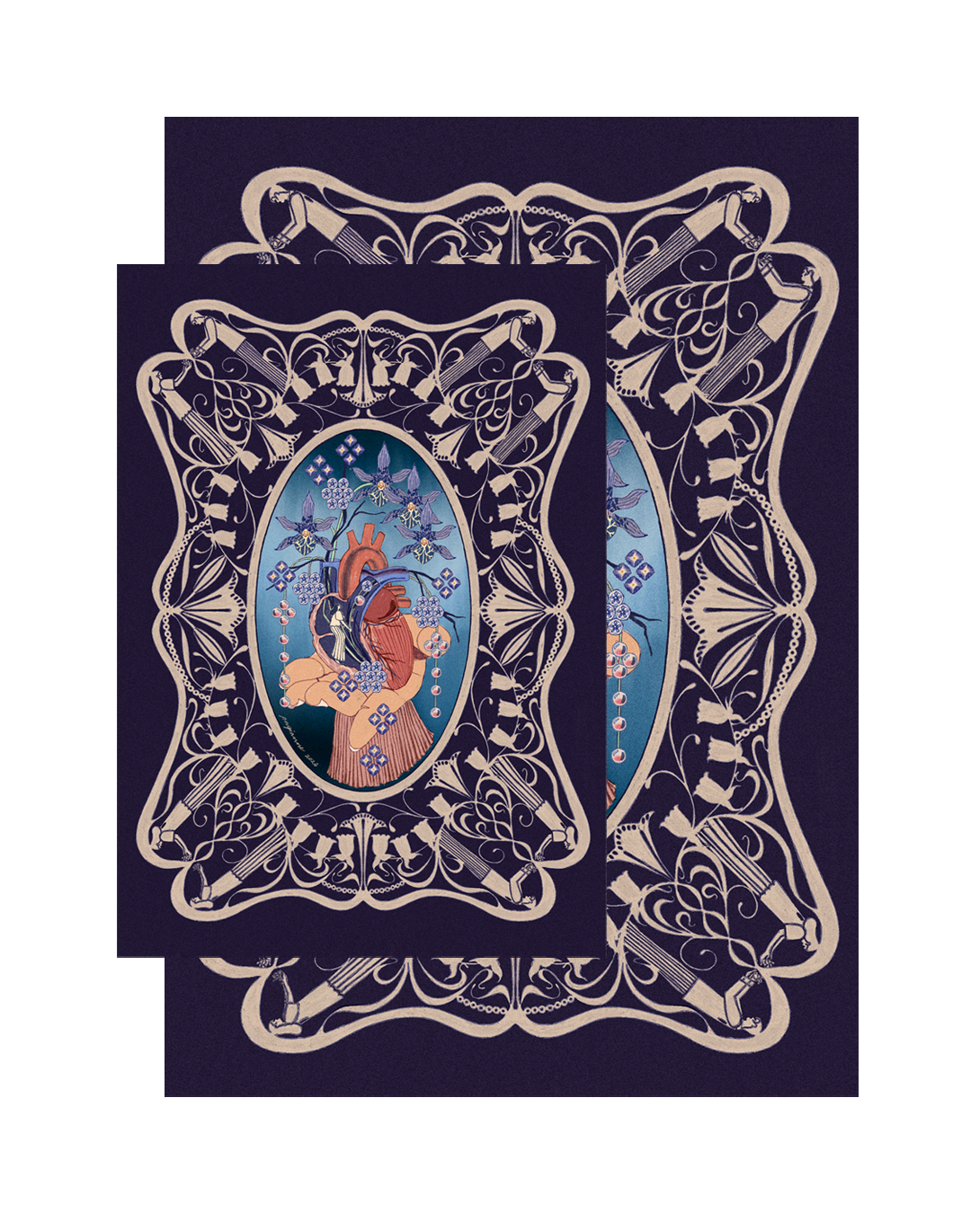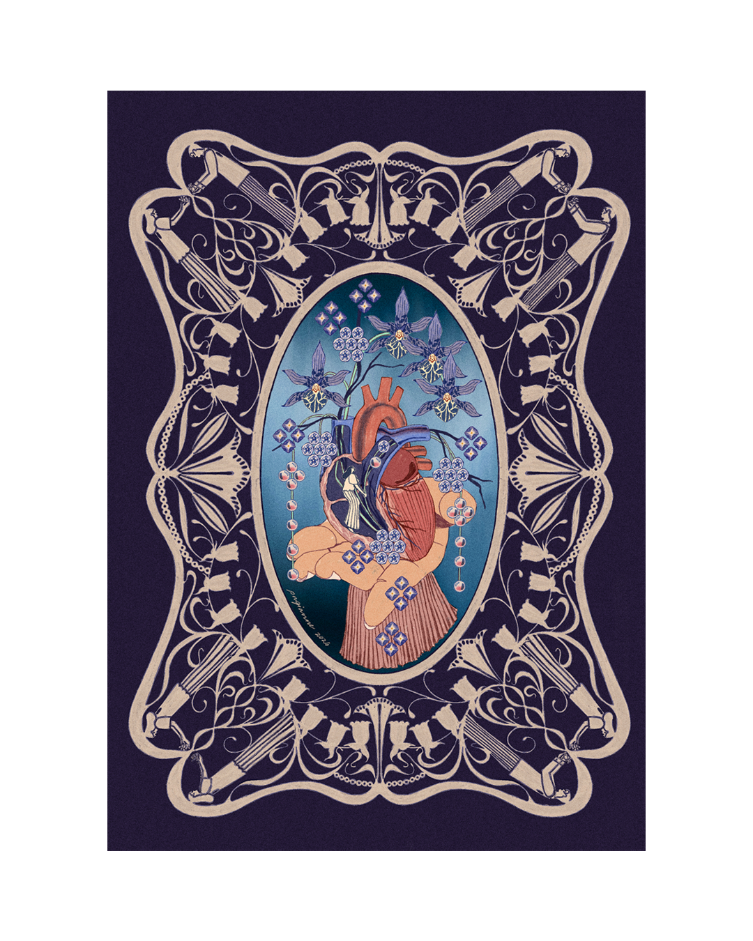 Art prints for "Sa'yo", an arranged offering from the heart, featuring the right side (right atrium, right ventricle, superior vena cava).